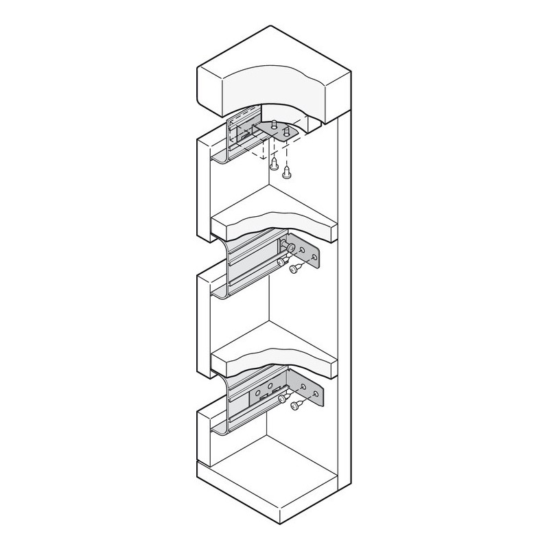 Montagevinkel til montage af kantprofil mellem bordpladen og fronterne derunder. Montagevinklen skrues fast op under bordet og kantprofilen sættes fast på vinklen.