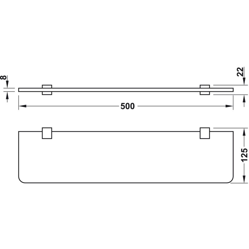 Glas hylde i glas og holdere i forkrom poleret messing