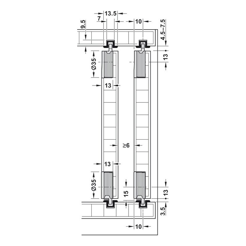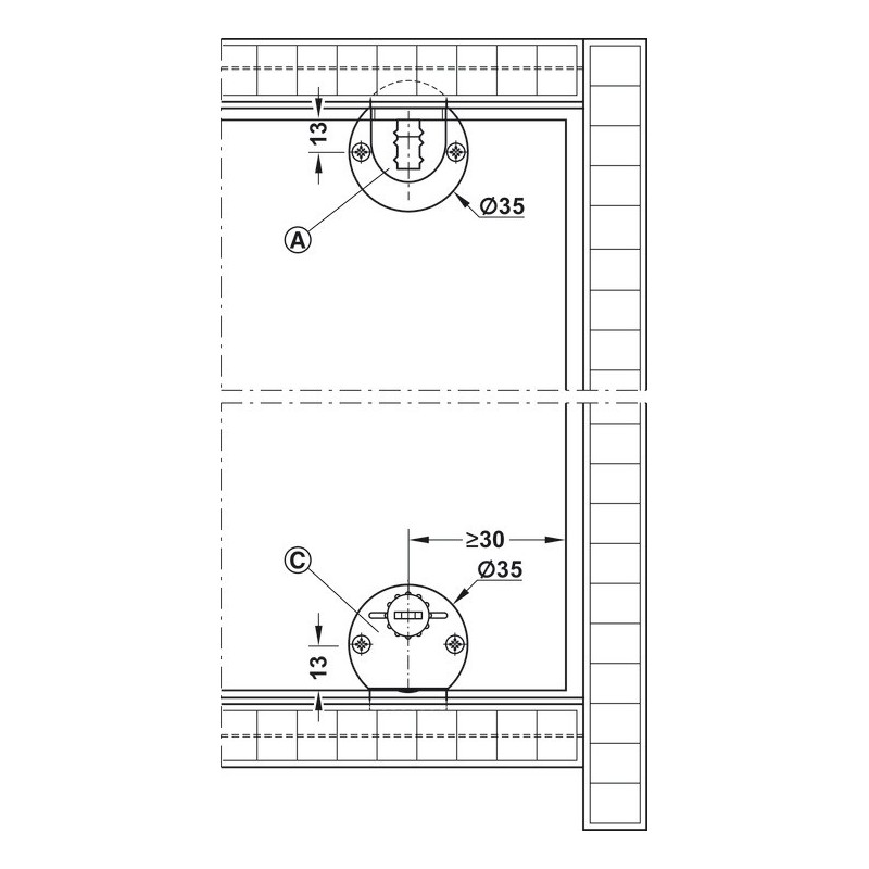 Denne model passer til 1 låge, men der er essentielt ingen grænse for, hvor mange der kan sættes i række, da der ikke er nogle stopklodser i skinnen her.