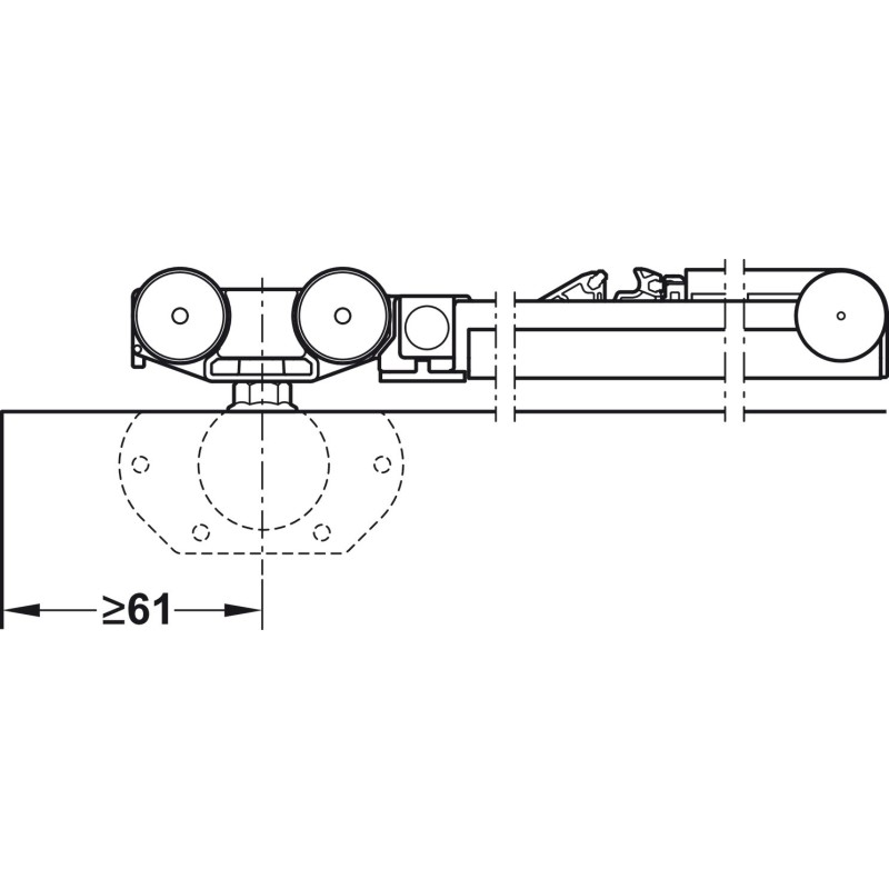 | 3 | Ja | Aksellejre | Ensidet | 600 | 407.40.011 6 kørebeslag (3 med lukkedæmpning og 3 aktivatorer) 1 dørstopper til toppen/4 til bunden 6 styr til bunden |