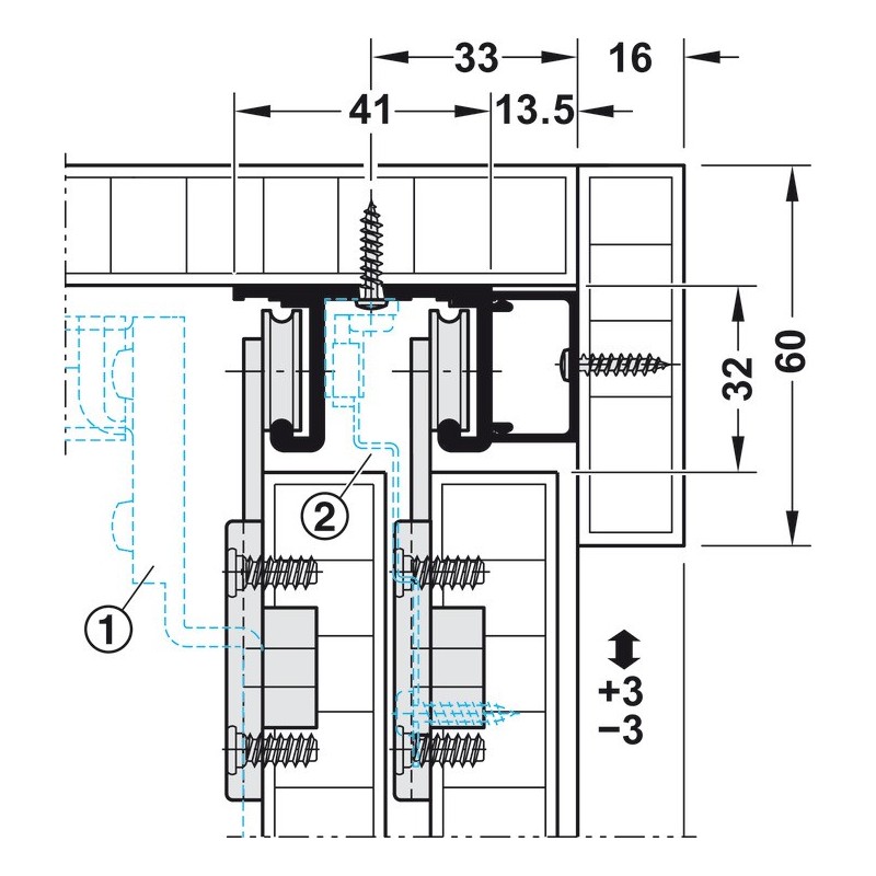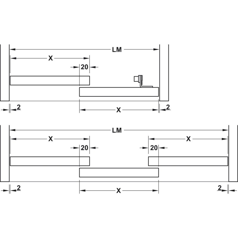 Denne version er til miksfront låger, det vil sige, til et system hvor den nederste kant af skabet er dækket af lågen, mens toppen er synlig. Passer til 2-3 låger.
