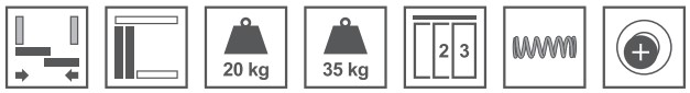Beslaget kan klare en lågevægt på op til 20 kg eller 35 kg (se varianter i tabel), og kan justeres med ±3 mm med excenterskrue. Vægt belastningen ligger i toppen af systemet.