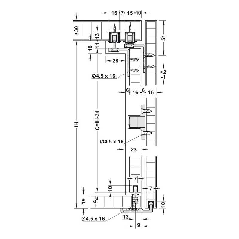 Denne version passer til skabssystemer hvor den ene låge skal sidde udenpåliggende mens den anden skal være indeniliggende. Passer til 2 låger.