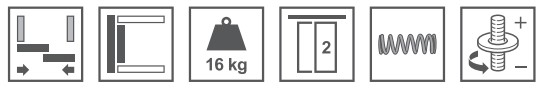 Beslaget kan klare en lågevægt på op til 16 kg, og kan justeres med +2/-1 mm. Vægt belastningen ligger i toppen mens lågen styres i styrbeslaget nederst.