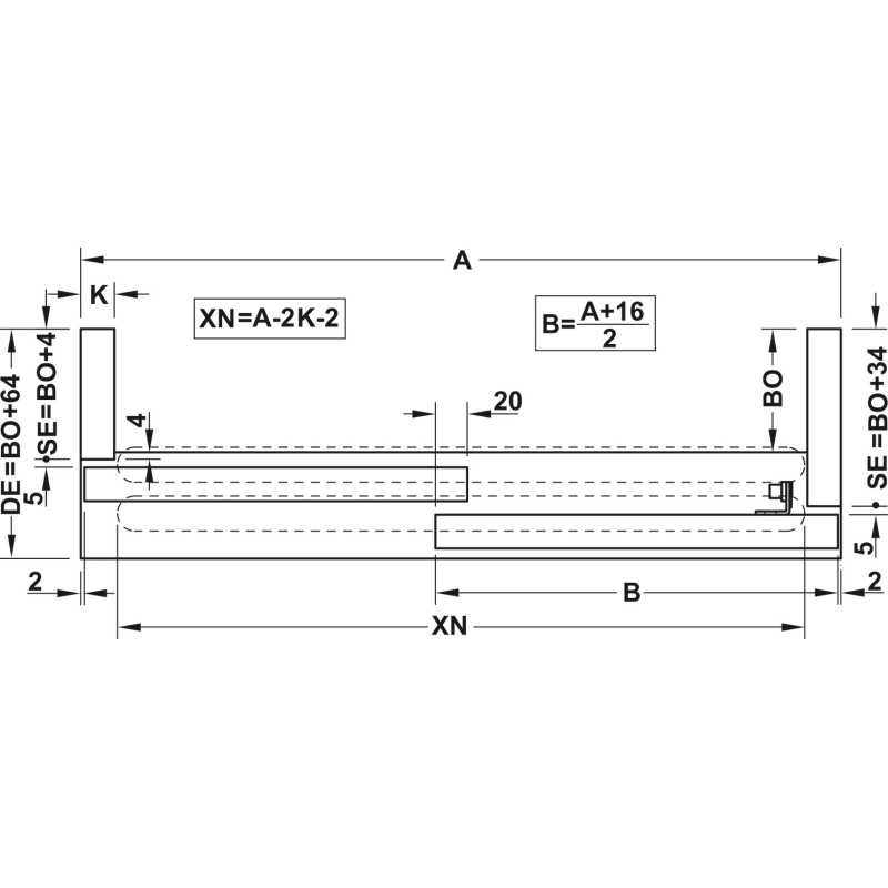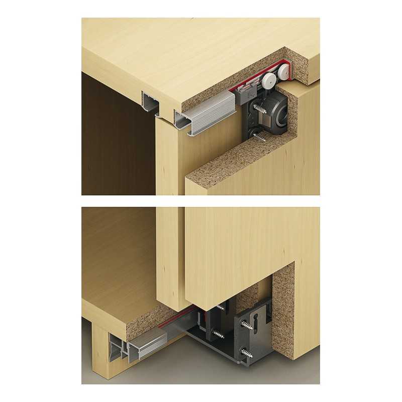 | Til 2 dør | 4 kørebeslag 4 styr 8 dørstopper med clip-in funktion 1 lågemedbringer Montagemateriale |