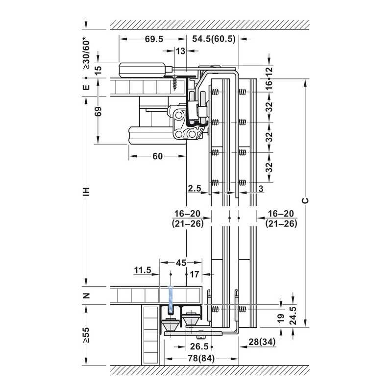 | Skinne monteres under bunden | 16-20 | C | ||