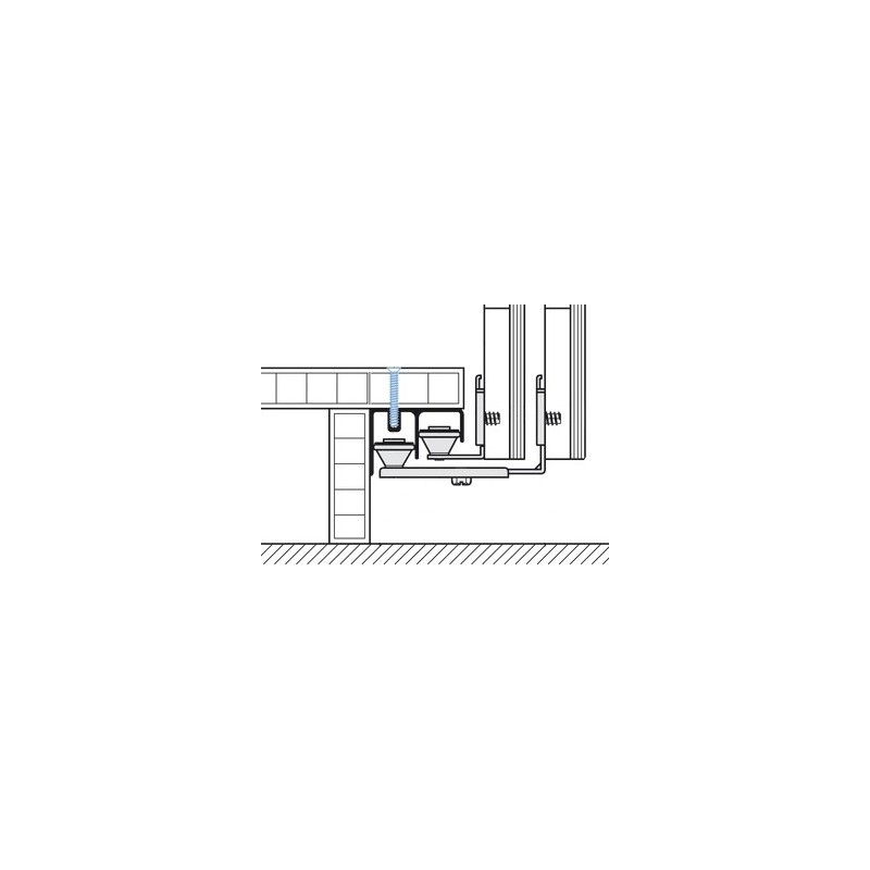 Kan bruges til synkroniseret åbning af lågerne. Skydeskabsbeslaget kan fås så bundstyreskinnen sidder enten under bunden af skabskorpus eller på samme front som lågen.