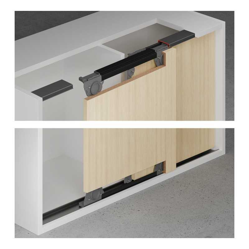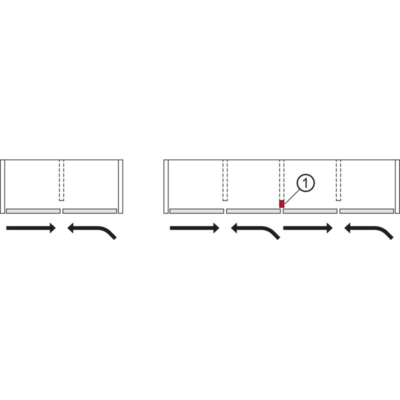 Beslaget kan bruges til op til 6 skabslåger i tandem med hinanden. Dette kræver flere sæt beslag og et center stop pr. 2 låger. Disse kan du finde i tilbehør.Interesseret i at vide mere generelt omkring skydedøre? Så klik her