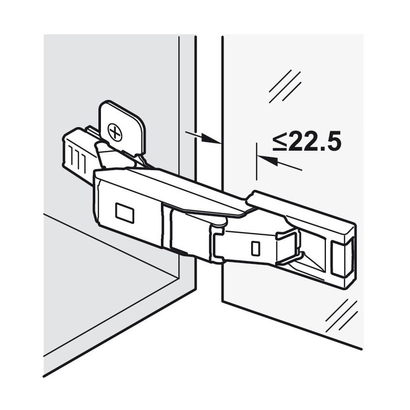 Blum Clip Top kophængsel med en åbning på 110 grader er et special hængsel til glas- og spejllåger. Dette hængsel er til låger uden glasboring.