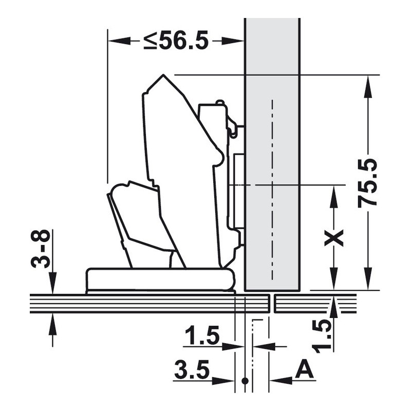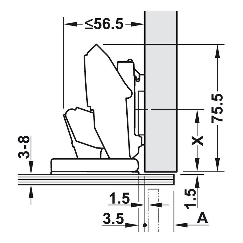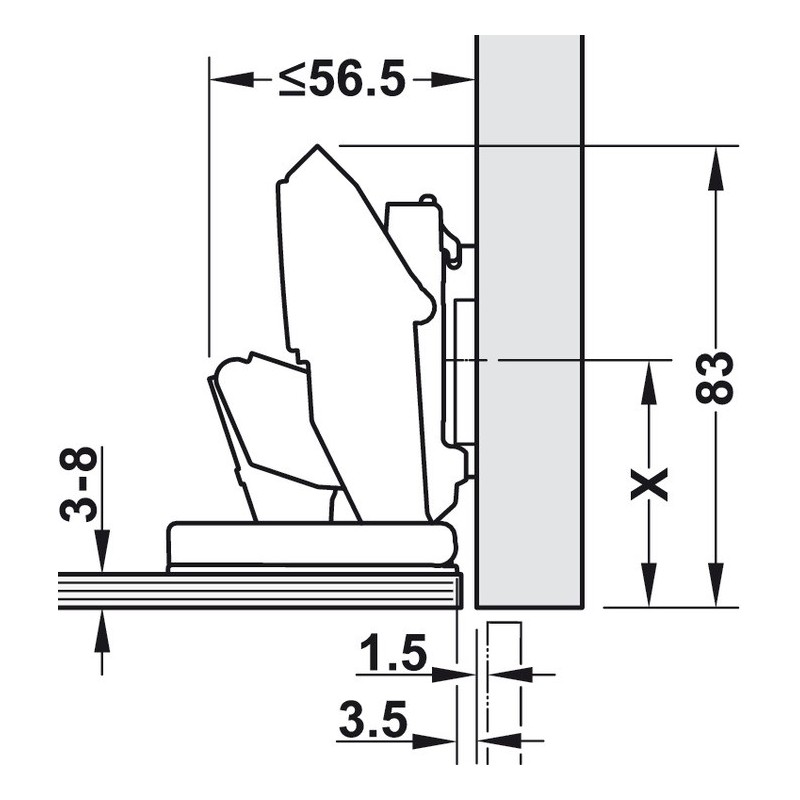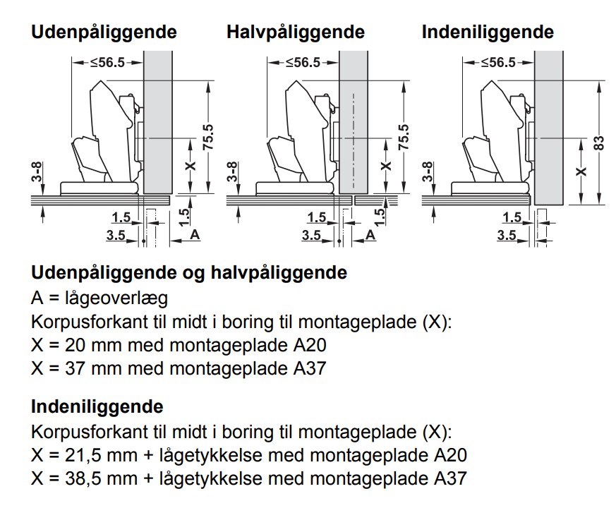 Dette hængsel passer til Blum montageplader. Montageplade skal købes ved siden af (Se tilbehør eller klik HER).