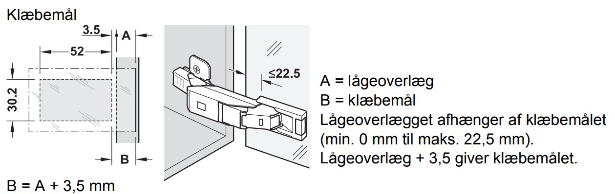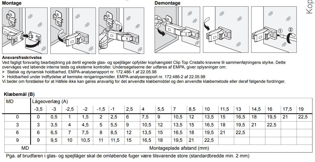 - Clip: Lader dig klikke hængslet på montagepladen uden brug af værktøj