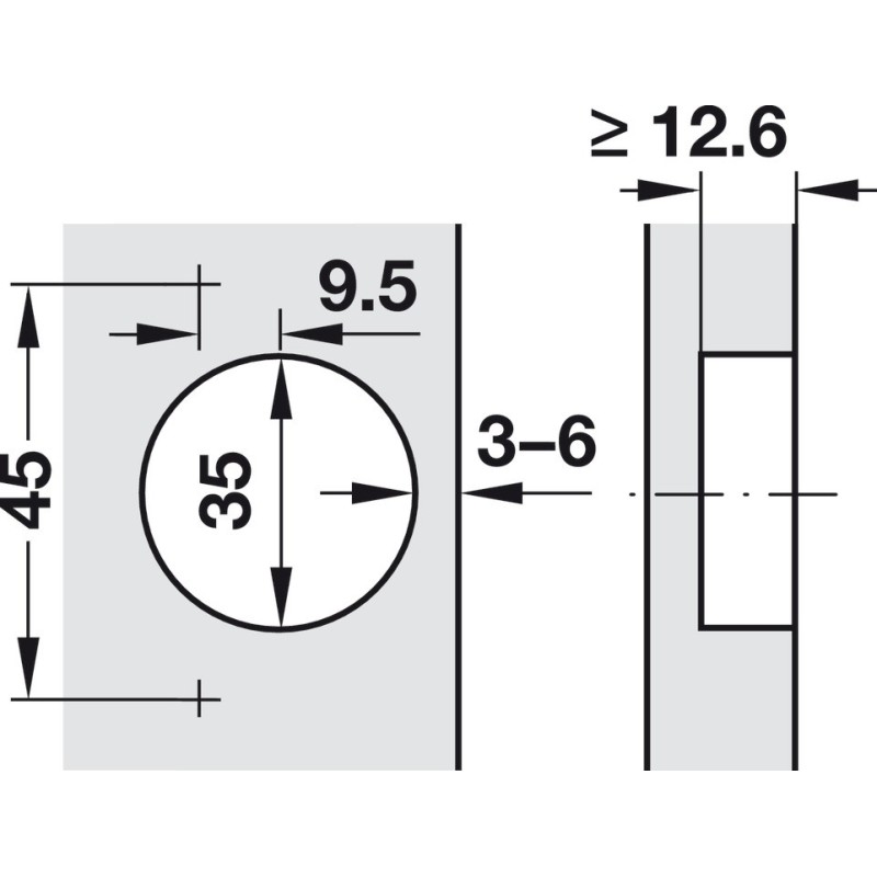 - Borehul: Ø35 mm