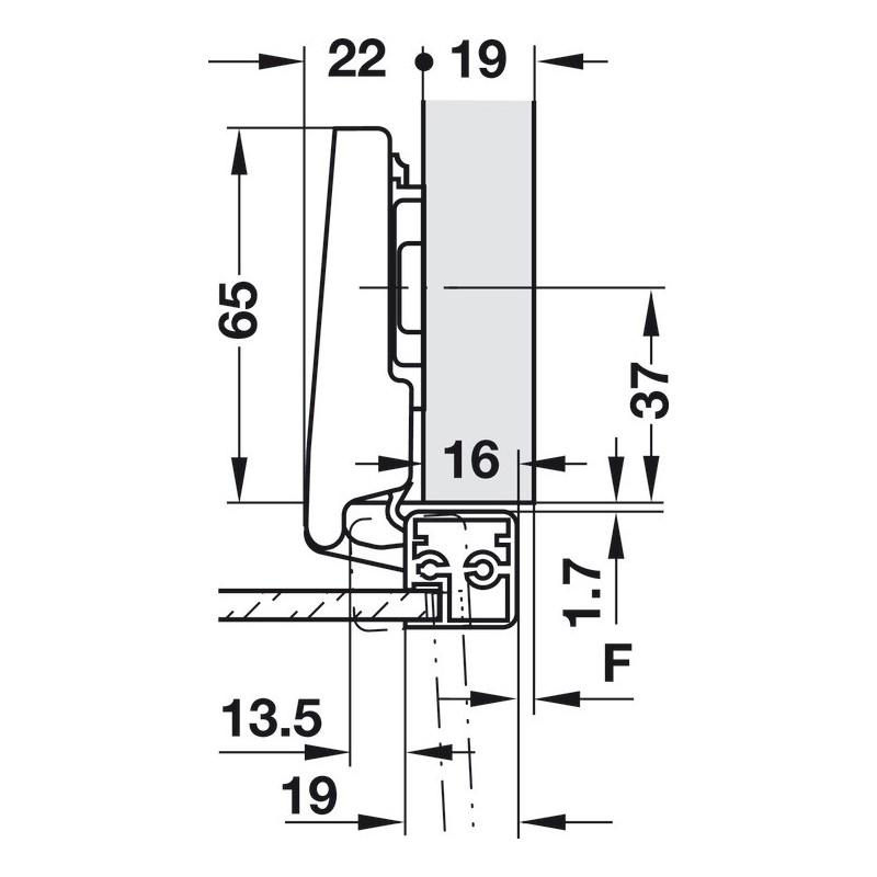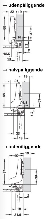 Du kan læse meget mere om hvordan du finder det rigtige type hængsel og hvordan du finder afstanden på din montageplade her: Vejledning i hængsler
