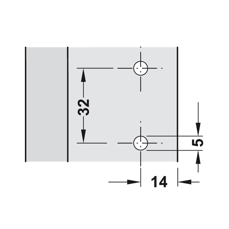 Afstanden du vælger længere nede afhænger af hængslet. Se hvilken afsted du skal vælge på produktsiden for hængslet. (Afstanden er blot højden på montagepladen der skubber hængslet længere ind i skabet)