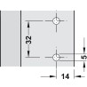 Blum krydsmontageplade kan anvendes sammen med alle Clip, Clip Top og Clip Top Blumotion hængsler fra Blum. Denne model er særlig egnet til stolle, fordi den er kortere.
