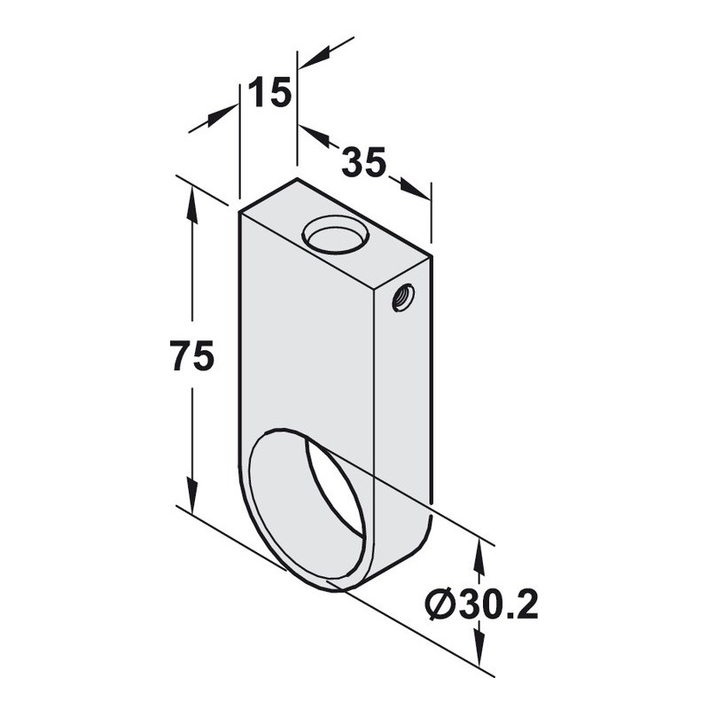 Passer til bøjlestang rund, diameter 30 mmSe målene på teknisk tegning i billeder.