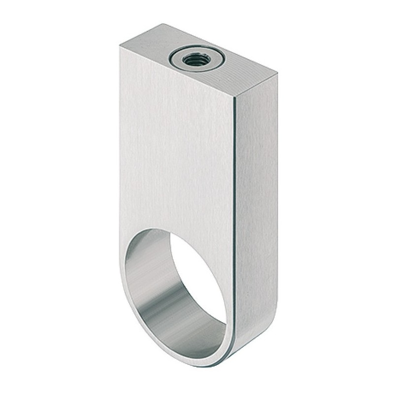 Midterbeslag i rustfri stål til påskruning under hylde. Denne model kan fås med en mat børstet overflade og med skjult montage