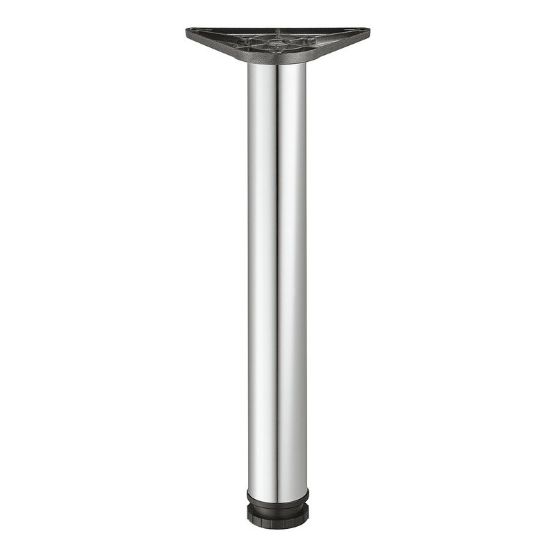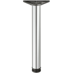 Simpelt og elegant rundt spisebordsben i forkromet poleret stål. Bordbenet kommer med en sort kunststof glider og en mørkegrå montageplade i zinklegering