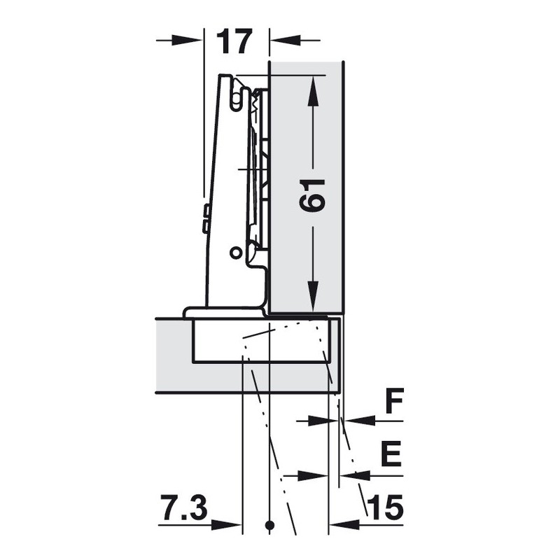 Häfele Duomatic Titanium kophængsel med en åbning på 110 grader er et standard hængsel til anvendelse i køkkenlåger og generelle opbevaringsskabe i hjemmet.