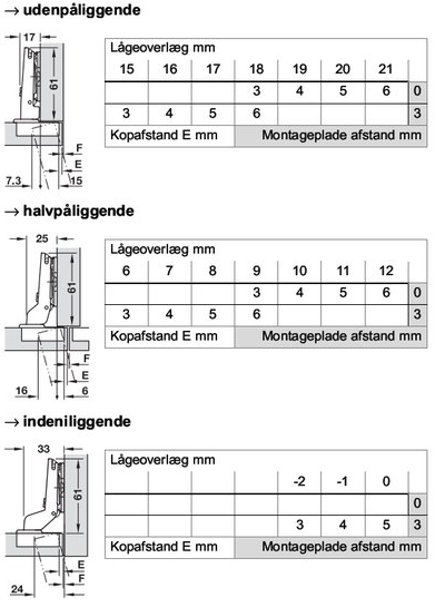 Herunder skal du vælge hvilken type hængsel du skal bruge. Typen af hængsel afgør hvilken afstand montagepladen skal have: