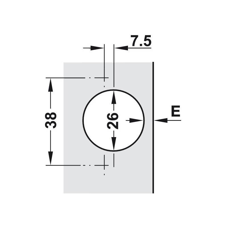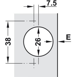 Ved dette hængsel findes kun boremålet: 38 mm.