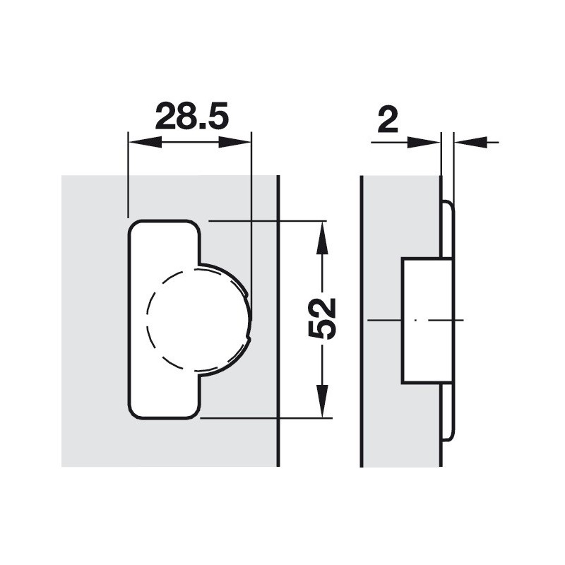 • Dybdejustering med Duomatic A montageplade: +2,8 mm