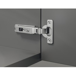 Dette hængsel er med lukkeautomatik, som gør at det i lukket position bliver holdt ind imod skabet.