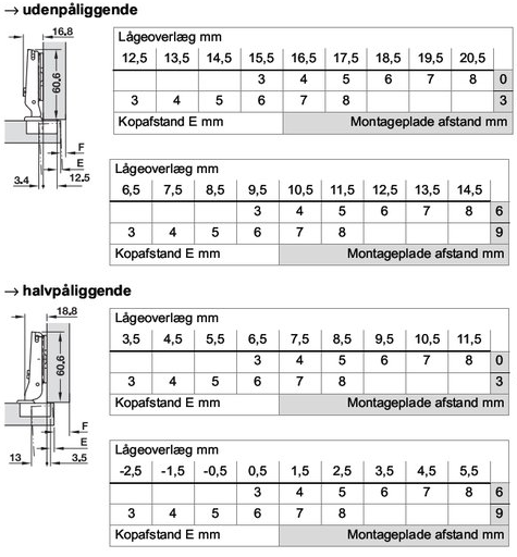 Herunder skal du vælge hvilken type hængsel du skal bruge. Typen af hængsel afgør hvilken afstand montagepladen skal have: