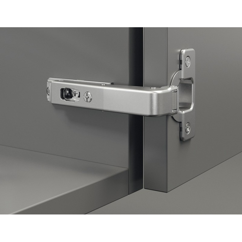 Dette hængsel er med lukkeautomatik, som gør at det i lukket position bliver holdt ind imod skabet.