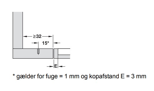 Nedestående billede viser minimums bredden på afstiveren for at hængslet kan være der:
