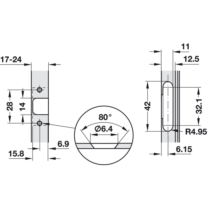 Häfele Duomatic til aluramme 17-24 mm - 105º