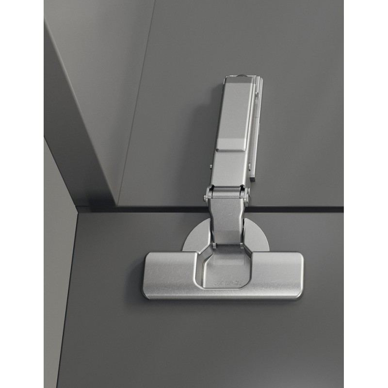 Häfele Duomatic Push kophængsel med en åbning på 110 til grebsløs åbning. Dette hængsel er særlig velegnet til låger med push-to-open.