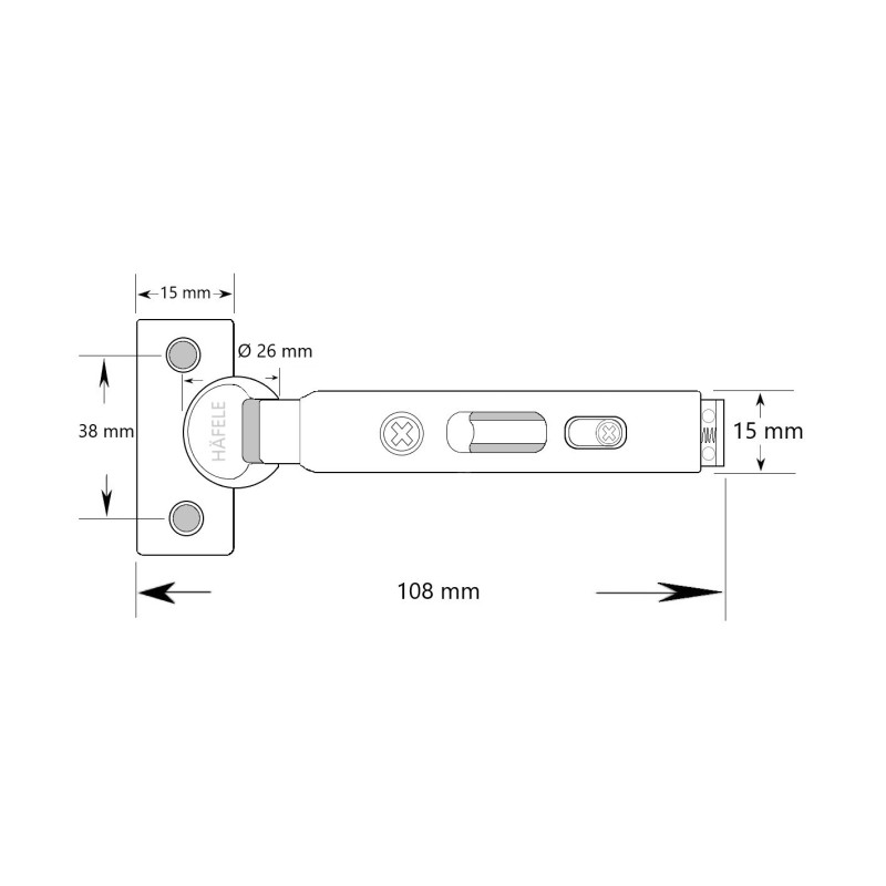 Minihængsel fra Häfele med soft-close funktion. Ideel til dine små projekter.