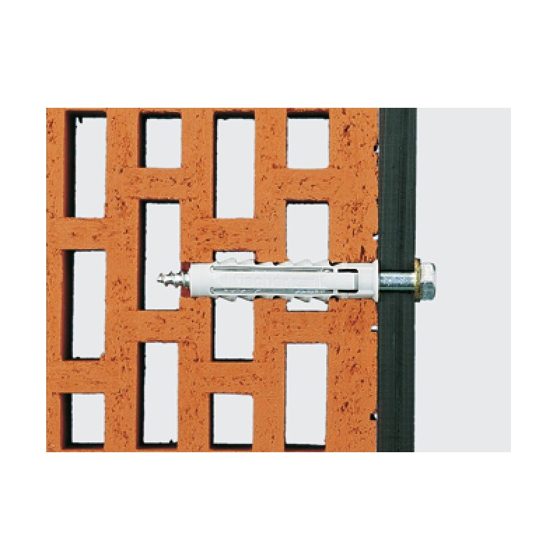 Denne Fischer SX/SX-L dybel/rawplugs med krave, kan anvendes i alle materialer. Den er modstandsdygtig overfor vejr, forældelse, korrosion, forrådnelse, samt temperaturer på -40 til +80°C