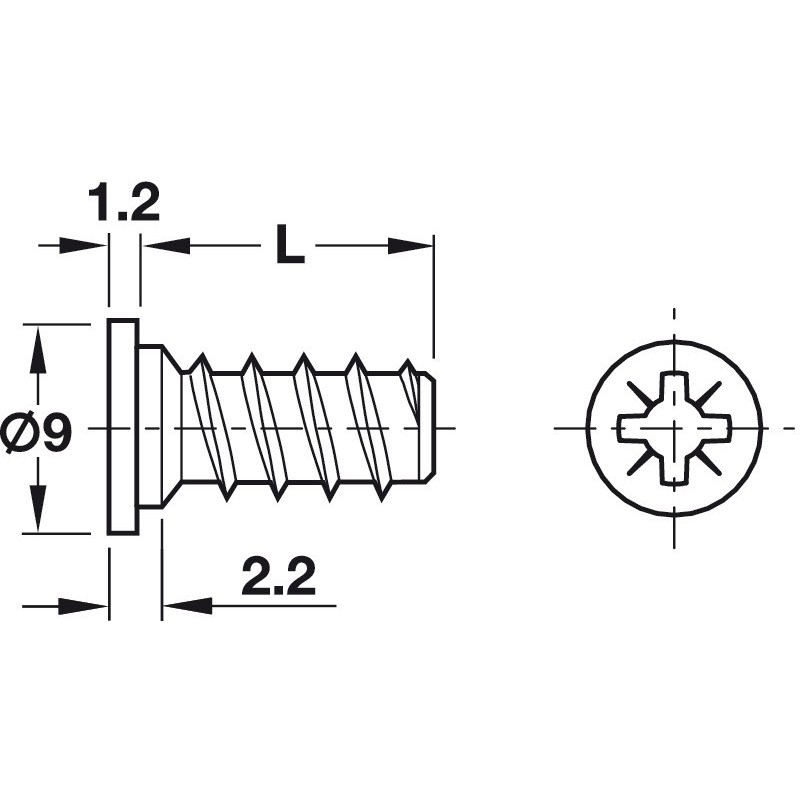 Denne euro skrue passer til et forboret hul på 5 mm.