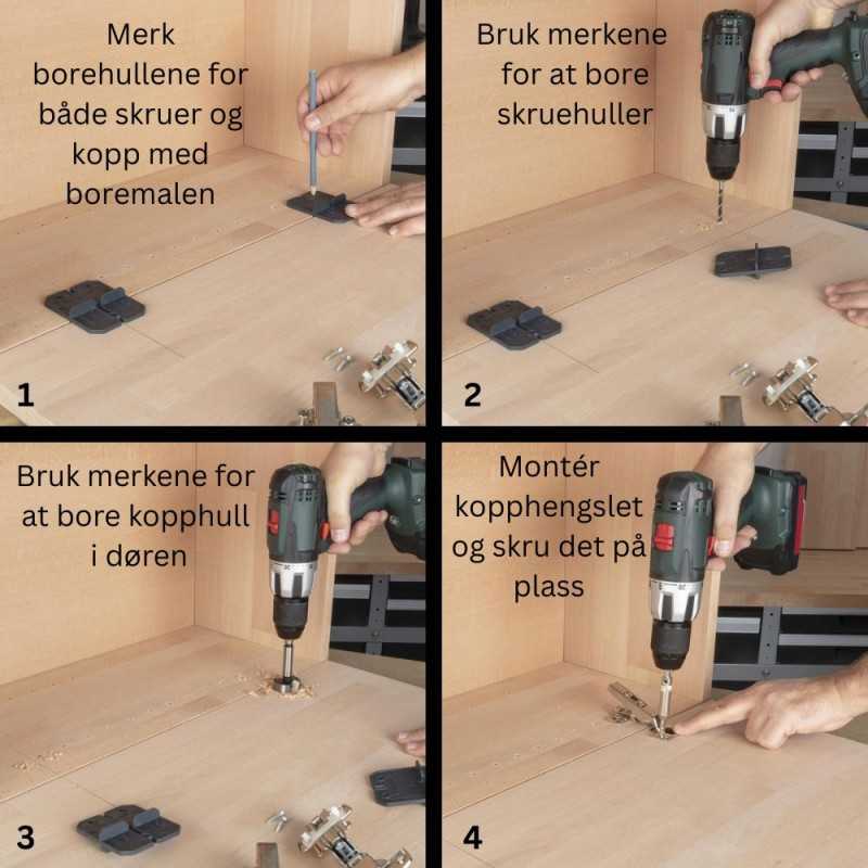 Dette sæt fra Wolfcraft har alt hvad du skal bruge for at bore perfekte huller til kophængsler.
