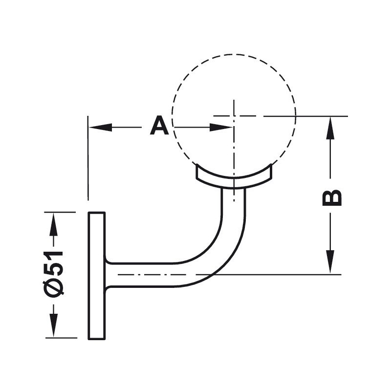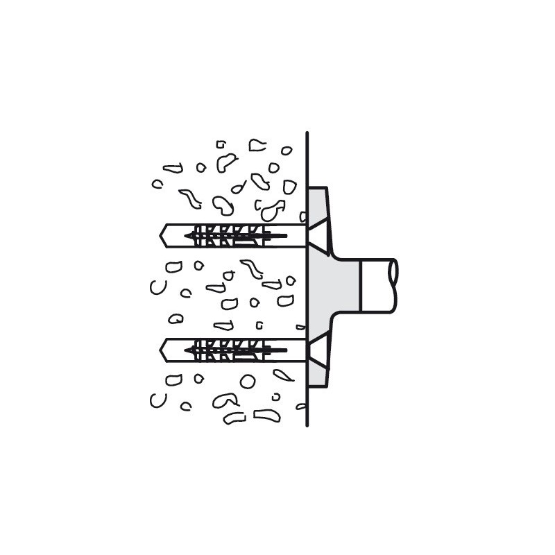 Gelænderholderen monteres på væggen med de vedlagte skruer, hvorefter gelænderet sættes fast oven på holderen. Den maksimale afstand mellem 2 håndlistestøtter er 700 mm.
