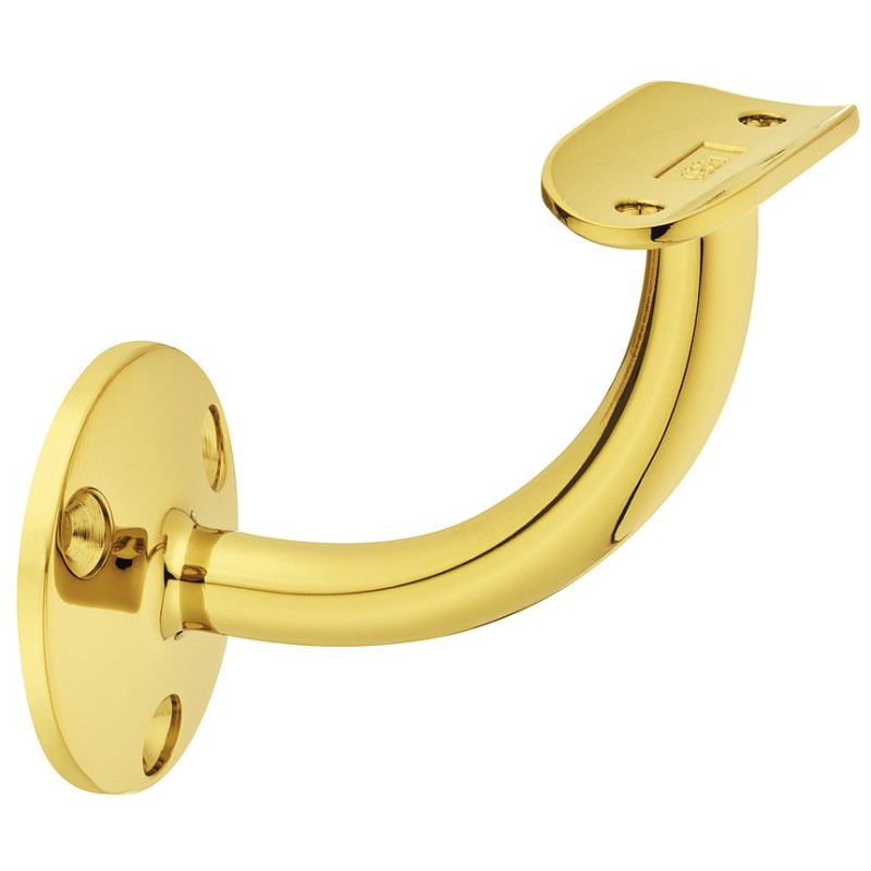Gelænderholder til at lave dit eget gelænder. Denne håndlistestøtte er beregnet til vægmontage og har synlige skruer. Gelænderholderen er produceret i zinklegering og har en PVD-belagt messingfarvet overflade.