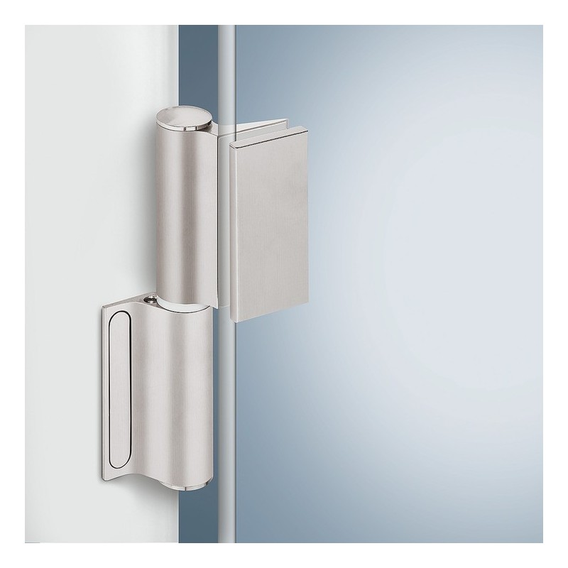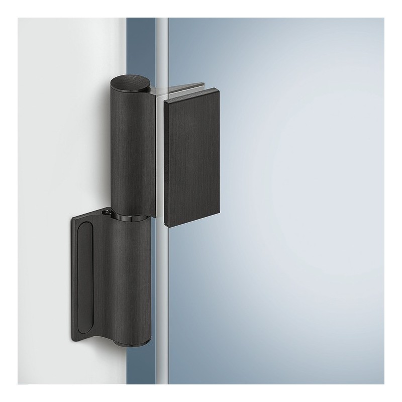 Double action fjederhængsel i aluminium til glas døre - både indvendig og udvendig.