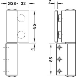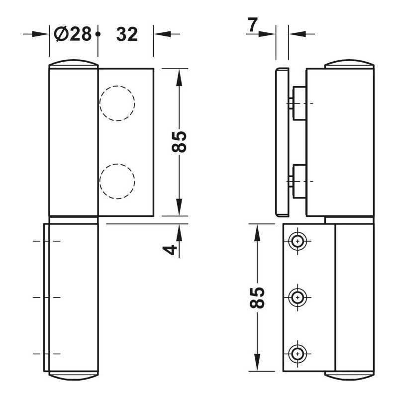 *henviser til om hængslet monteres på højre side af dørkarmen eller venstre.