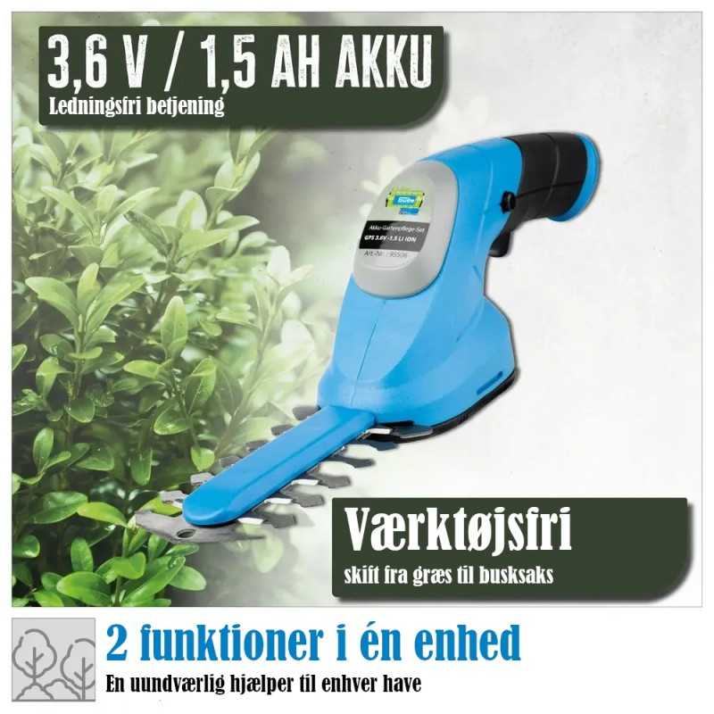 Leveringen indeholderMultitool, græsklipper klinge, hækkeklipper klinge og oplader