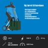 Havekværnen har store hjul med skridsikring, så du kan have den med hele vejen rundt. Derudover består den af en robust stålramme med en 45 L opsamlingspose.