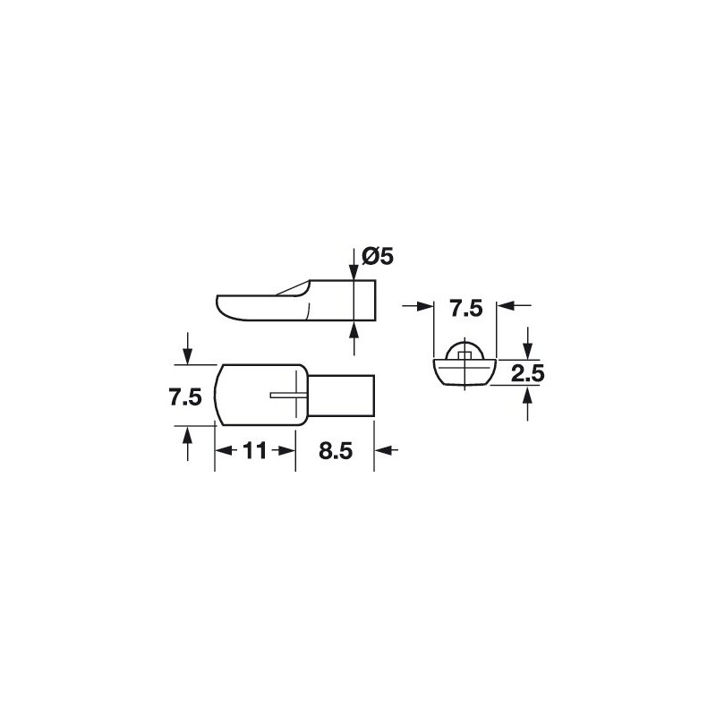 Lille hyldebære der passer i et borehul Ø5 mm.