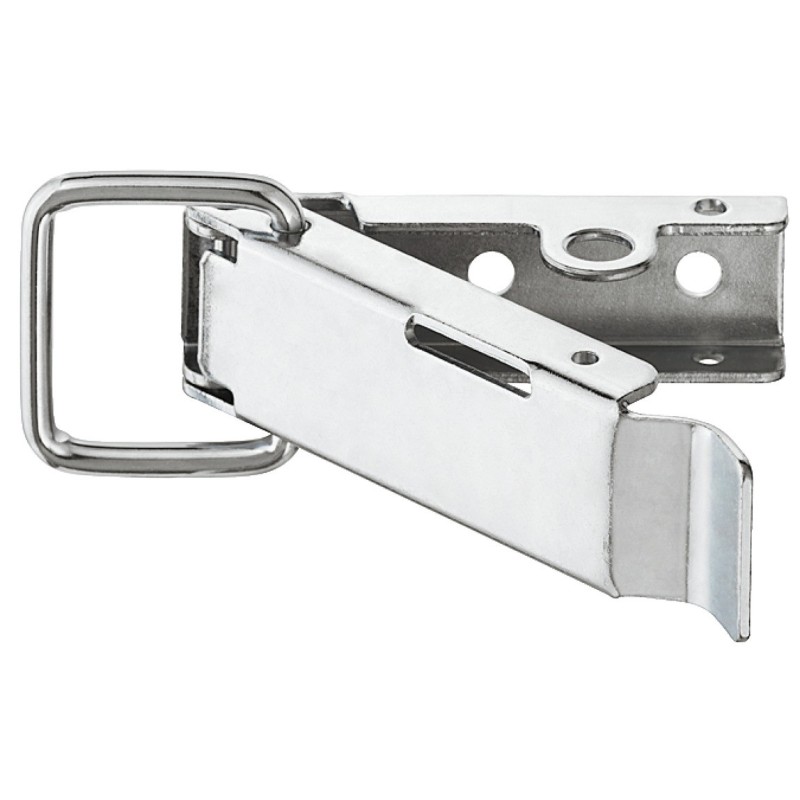 Smart kasselukkebeslag til lukning af kasser, kufferter eller lignende. Denne model er produceret i forzinket stål og har en lille ring til aflåsning med hængelås, for ekstra sikkerhed.