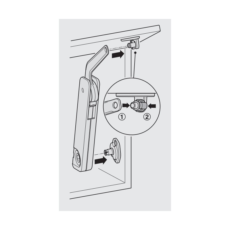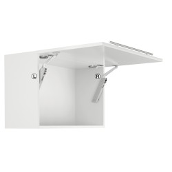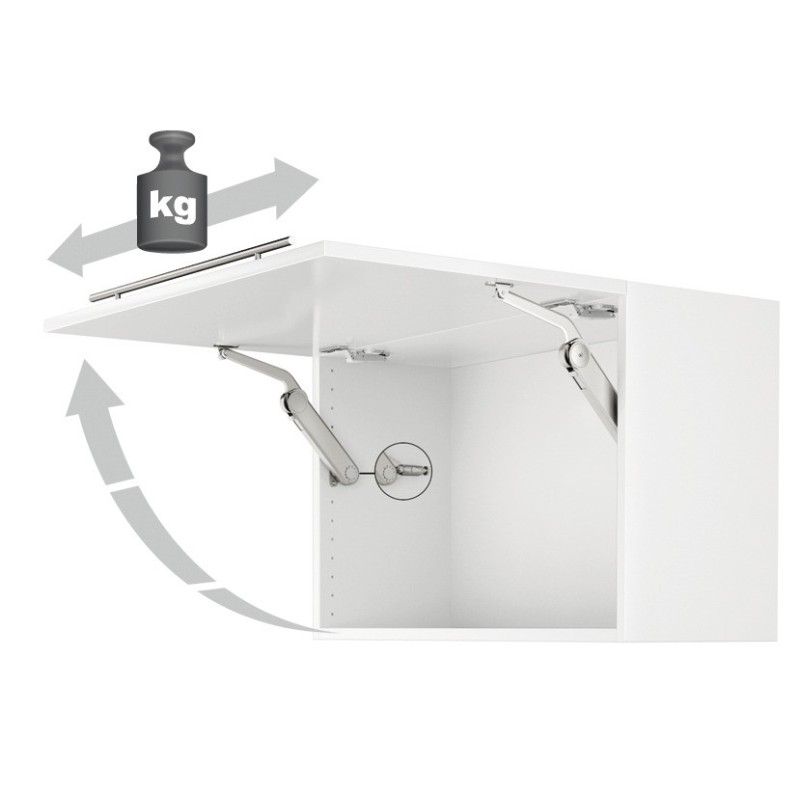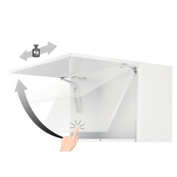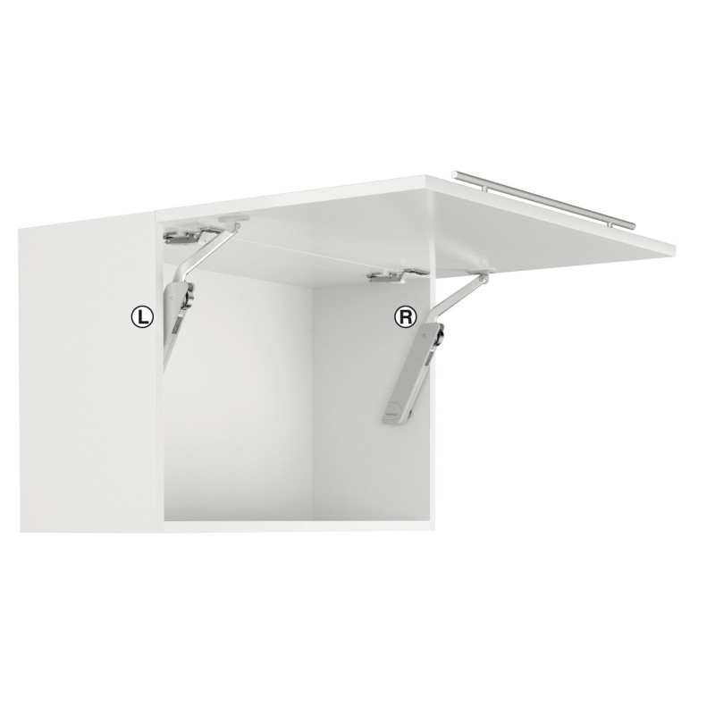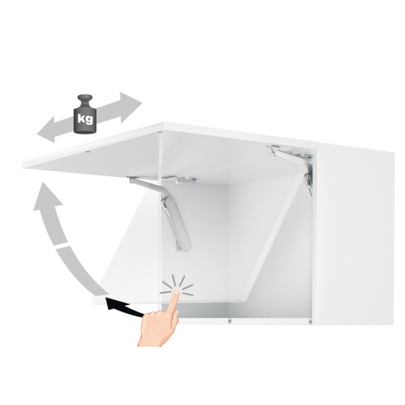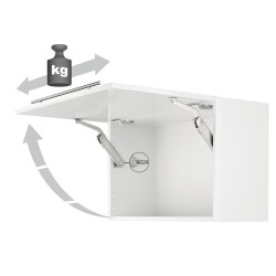 - Standard klapbeslag til brede og tunge fronter med greb (Assisterende hjælp til at åbne klaplåger)