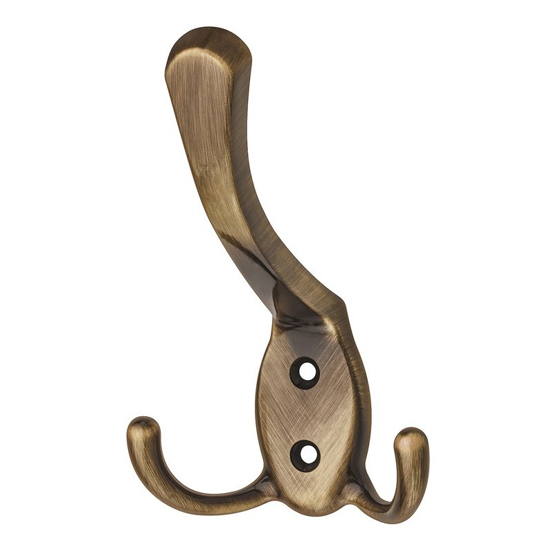 Garderobekrog med to mindre kroge i antik brun zinklegering