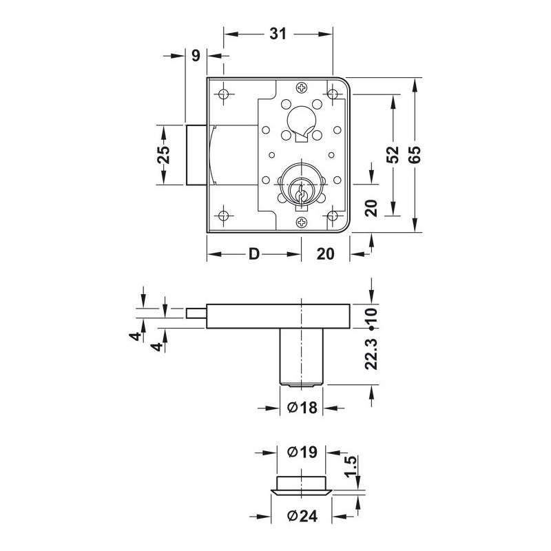 Denne version er en enslukkende lås, hvilket vil sige at alle nøgler er ens, og kan bruges alle steder denne lås sættes i.
