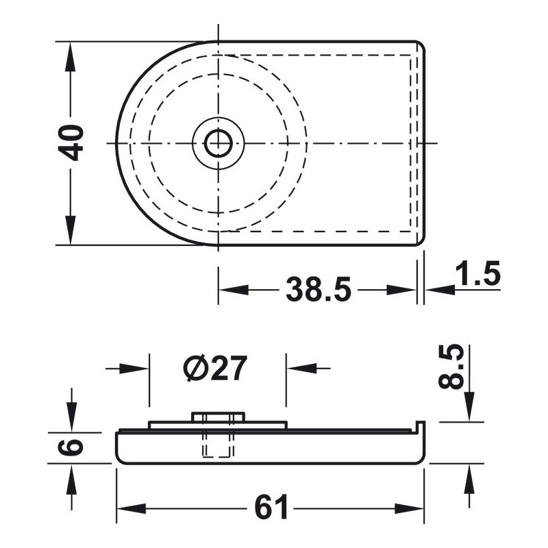 1 Gevindskrue M6x10 (passer til glastykkelse op til 8 mm)