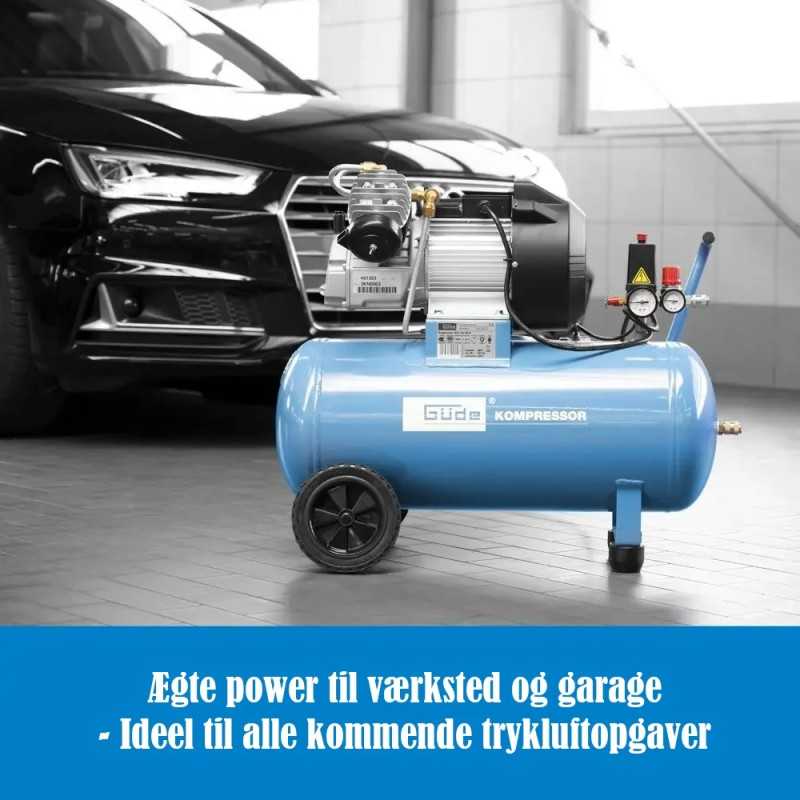 Güde kompressor 400/10/50N er en stærk kompressor med oliesmurt 2 cylindermotor V-enhed og direct drive.