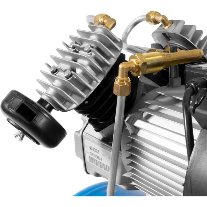 Derudover, har den trykreducerende funktion, som gør det nemt at justere trykket. Der er også sikkerhedsventil og kondensdræn, samt modtryksventil og integreret luftfilter. Der er trykmåler både til kedelpresset og arbejdspresset.